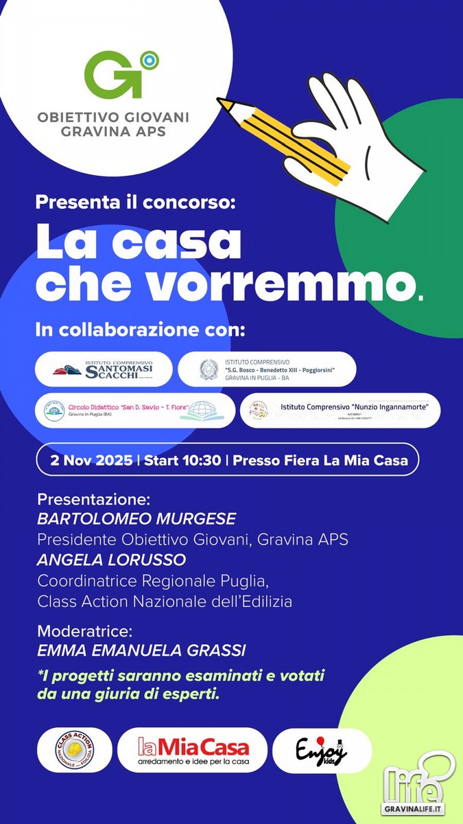 Chiude i battenti la fiera La Mia Casa. Nella giornata del 2 novembre la scena sarà occupata dalla iniziativa "la Casa che vorremmo": un concorso di idee rivolto alle scuole primarie e secondarie di primo grado proposto dall'associazione Obiettivo Giovani.