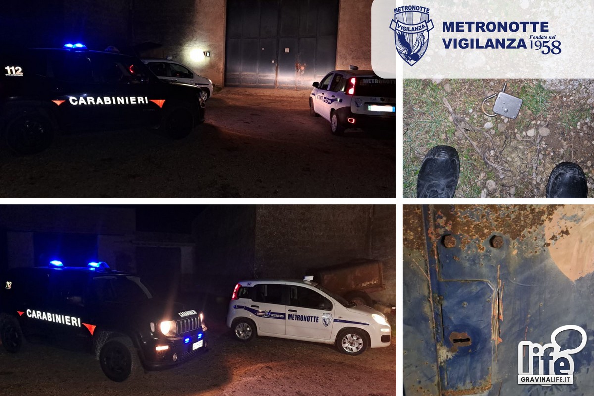 Grazie all'azione ed il pronto intervento delle guardie giurate della Metronotte e dei militari dell'arma dei carabinieri si è riusciti a sventare l'ennesimo tentativo di furto nelle campagne di Gravina.