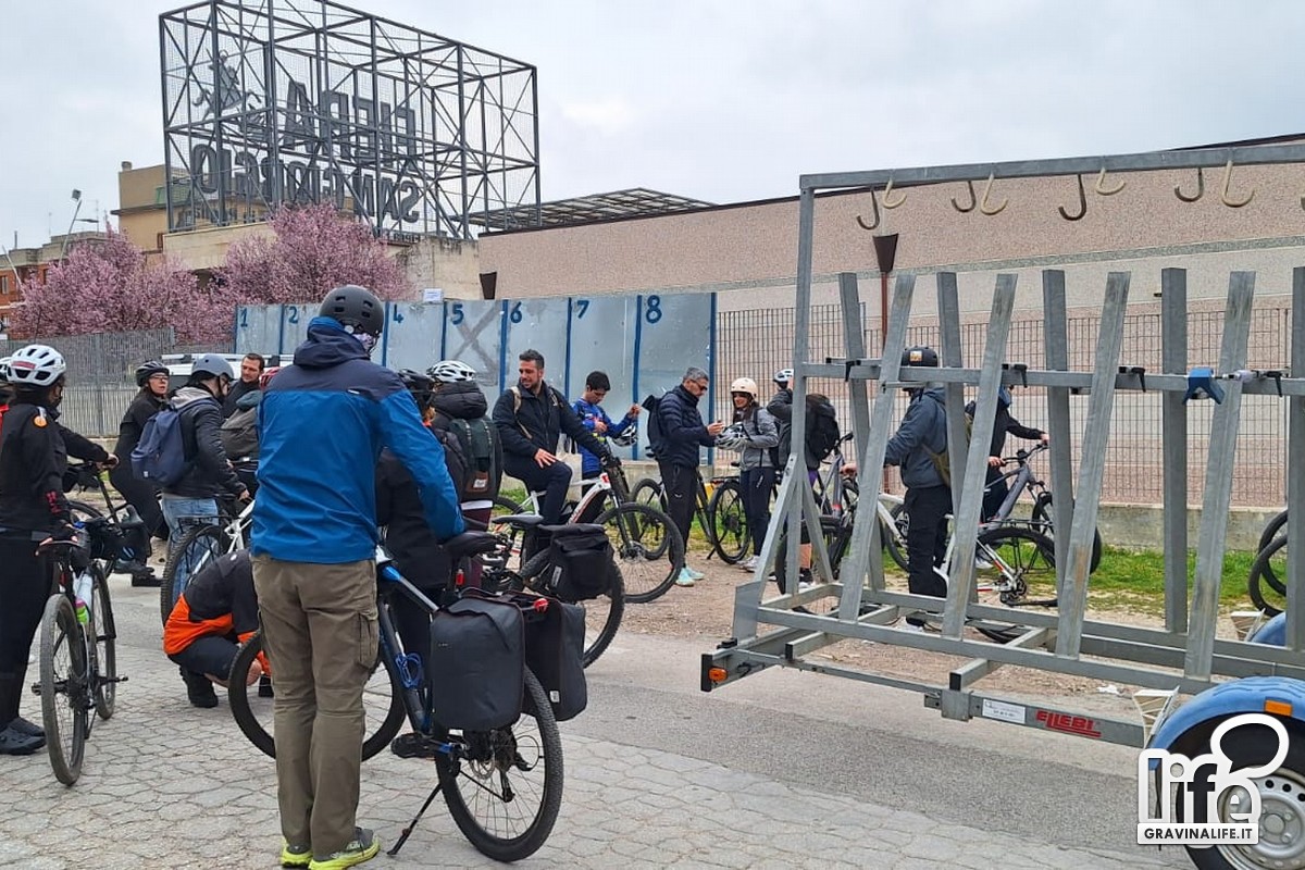Una buona percentuale di partecipanti è arrivata in treno da Bari con le bici al seguito, mentre chi non ne disponeva ha potuto prenotarla in anticipo noleggiandola gratuitamente.