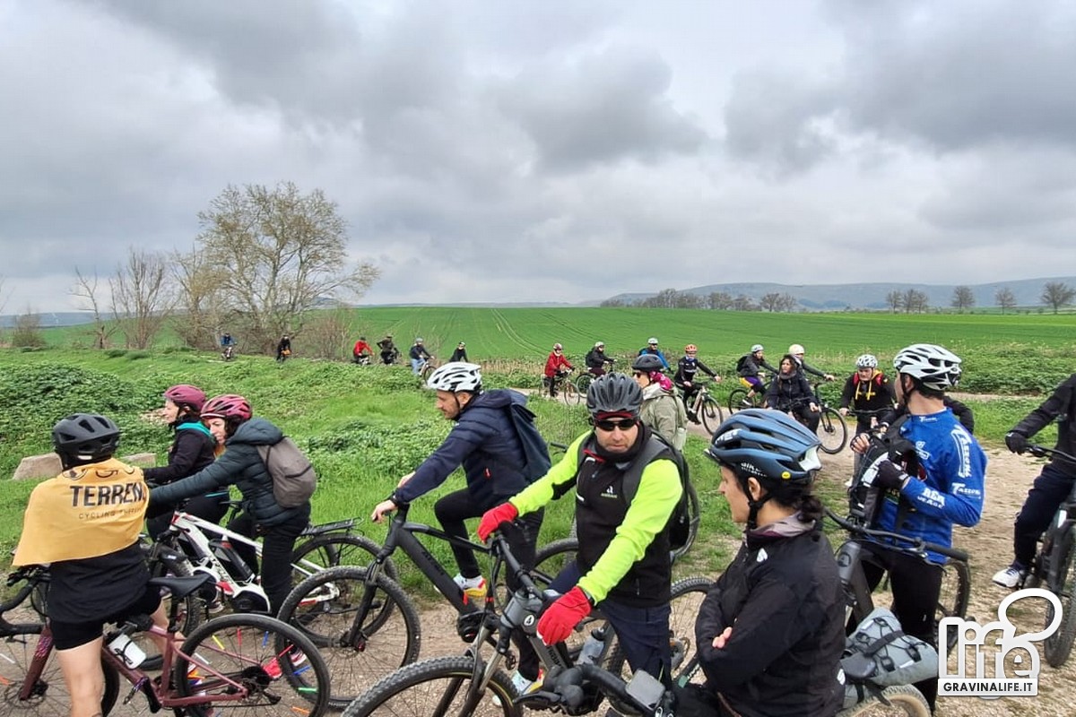 Tutti i ciclo-escursionisti hanno percorso un giro ad anello partito da Gravina, con sosta a Poggiorsini.