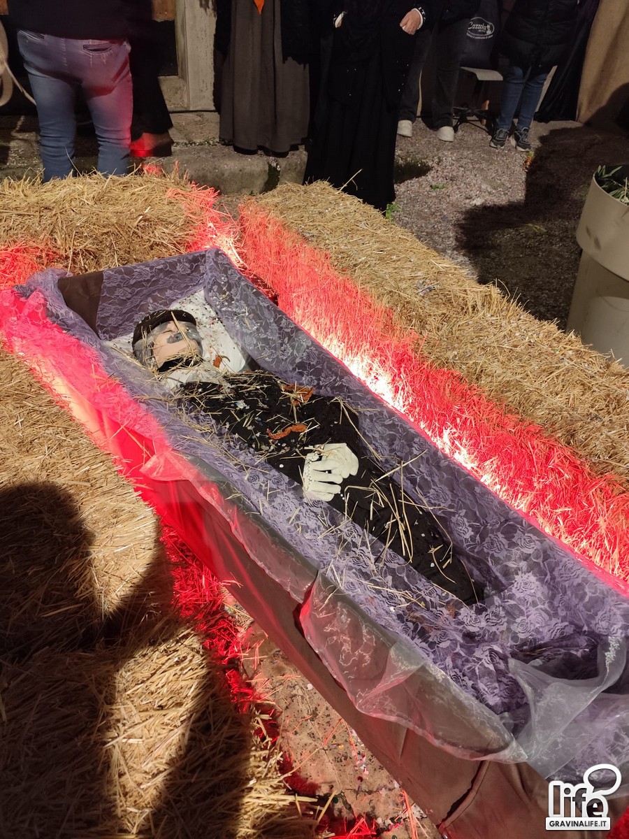 Tra coriandoli e scene inaspettate, sulla tradizione riadattata da Vannisio De Palo di Aretè APS, in un copione, non pedissequamente seguito per volontà precisa degli interpreti, il mondo rovesciato: l'inutile lamento funebre per un fantoccio, il bizzarro testamento e dalla viva voce di chi ha vissuto e partecipato al carnevale di un tempo, come Pierino Ruzzi della Pro Loco UNPLI, i racconti reali, ma divenuti satirici per l'occasione, dei riti e delle tradizioni autoctone di un periodo dell'anno che i gravinesi amavano celebrare nel paradosso.