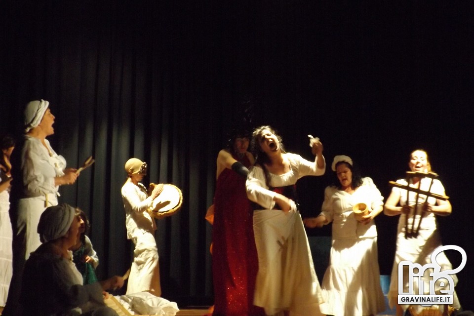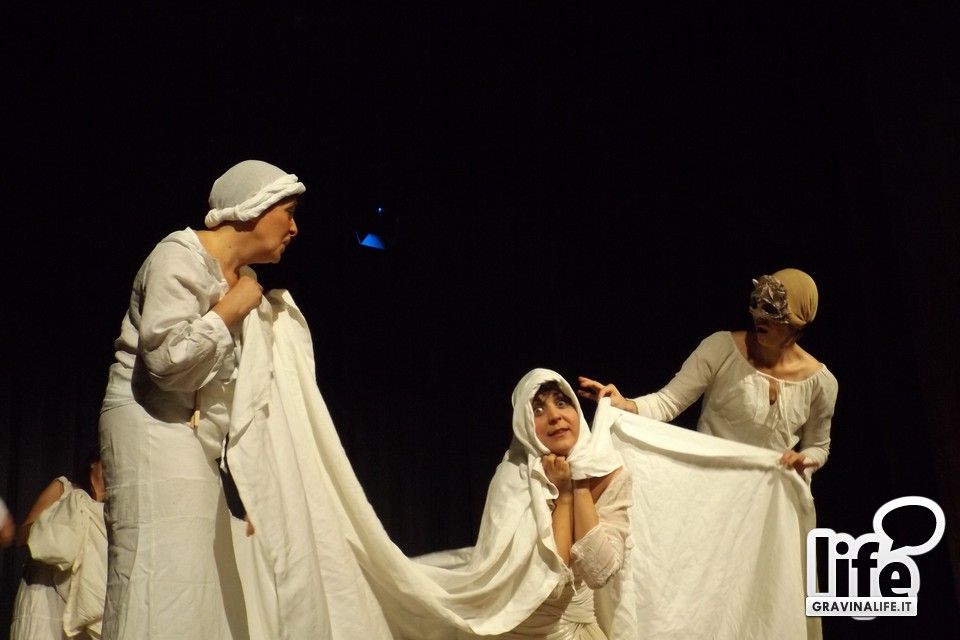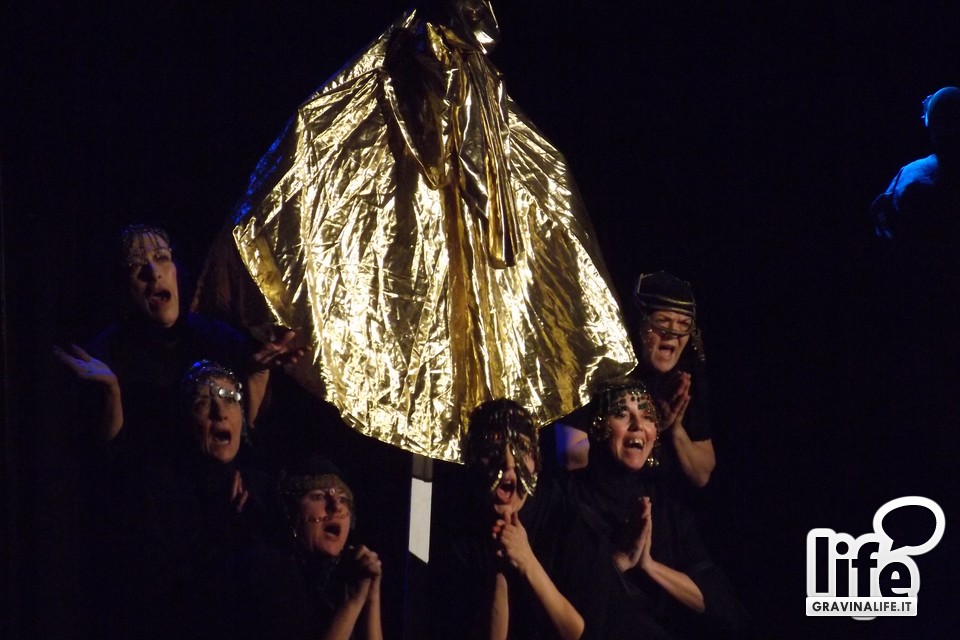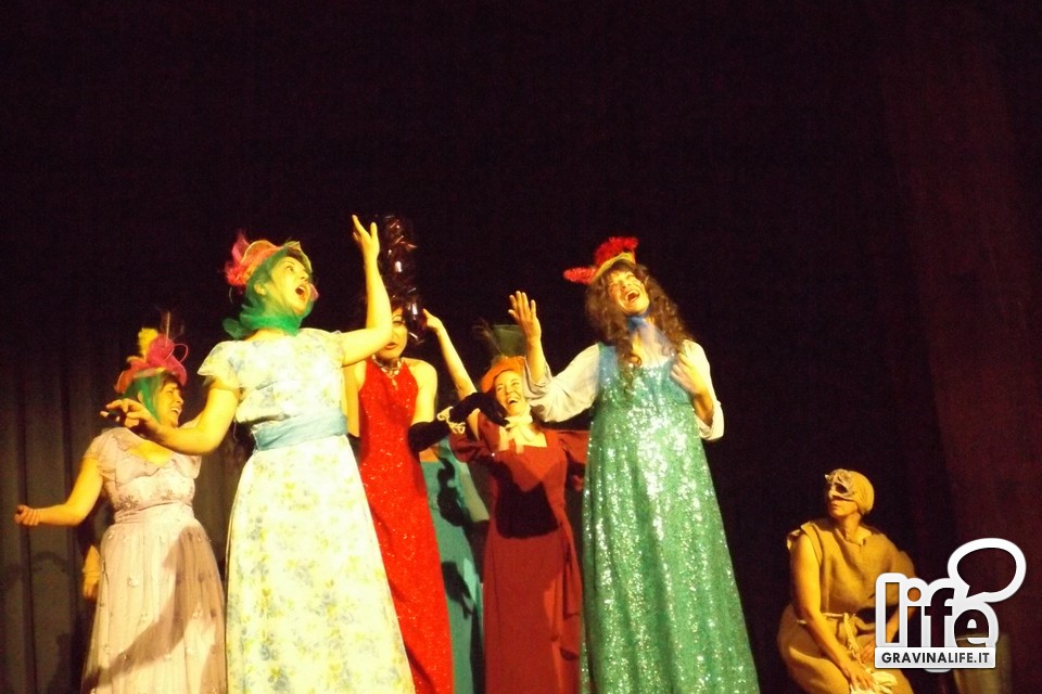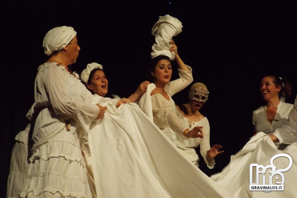 Confusione da mercato, chiacchiere da basso, tamurriata napoletana infondono ritmo alla narrazione. Sulla scena personaggi esplosivi, colorati, poetici, ironici e sensuali. Si respira un'atmosfera onirica caratterizzata da una scenografia neutra, abiti curati nel minimo dettaglio così come i movimenti di ogni attore, che con parole, cantate e recitate, ha dato il via a una indimenticabile magia.
