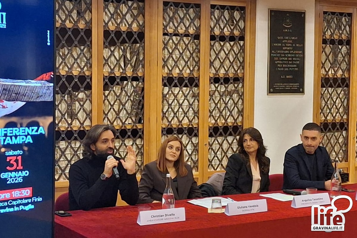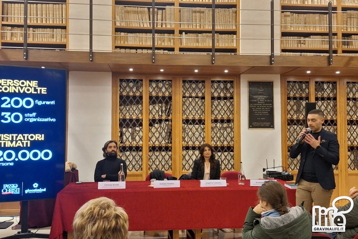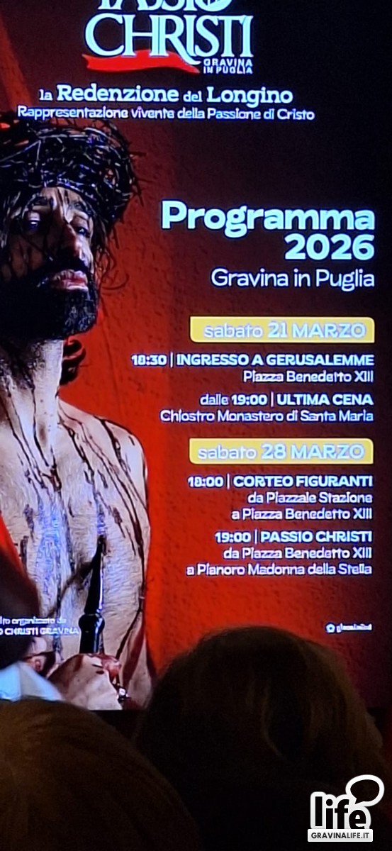 "La comunità si sta muovendo, ognuno di noi è ambasciatore della cultura", ha ricordato Cristian Divella, citando anche le numerose istituzioni e gli enti pubblici e privati che sostengono l'evento "Passio Christi 2026": Comune di Gravina in Puglia, Regione Puglia, Puglia Promozione, We Are in Puglia, Confcommercio, Camera di Commercio di Bari, EPLI, Gravina 2028.