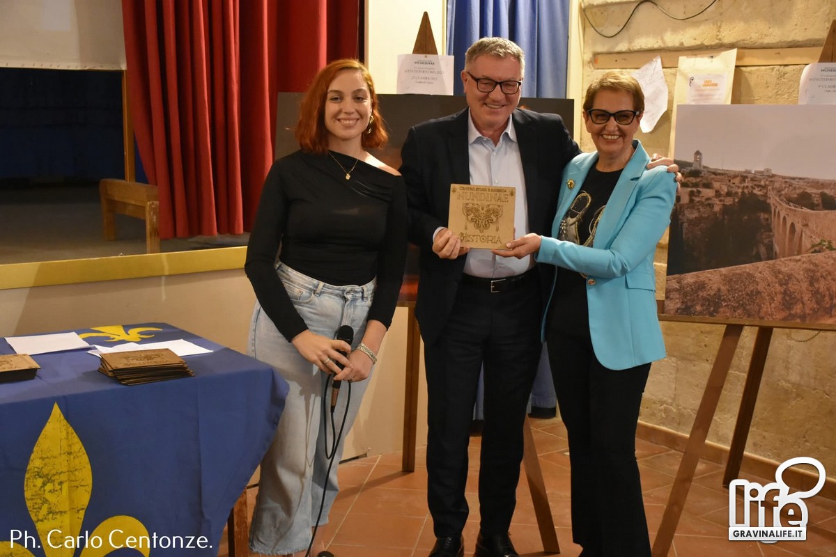 Presenti alla cerimonia l'Assessora al Turismo Marienza Schinco che ha premiato la scuola I.C. Montemurro, nella persona del Dirigente Michele Loglisci, risultata vincitrice, oltre a Cristian Divella quale Ambasciatore di Gravina 2028, che ha premiato la foto di Domenico Belfiore, presidente di Photo Digital Puglia, quale riconoscimento speciale.