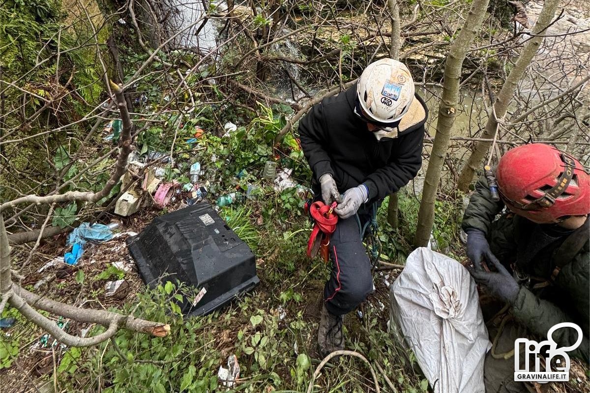 Non è la prima volta che il gruppo di volontari si cala nella gravina per una raccolta straordinaria di rifiuti.