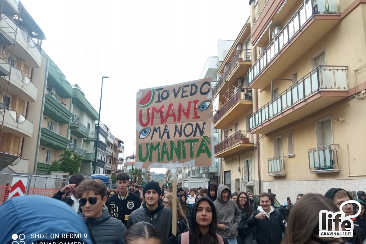 Il corteo dei giovani ha preso le mosse dall'istituto scolastico, per poi raggiungere piazza Scacchi dove ci sono stati alcuni interventi. A porgere il proprio saluto alla partenza del corteo anche il consigliere comunale Carlo Loiudice che si è detto orgoglioso di questa iniziativa.