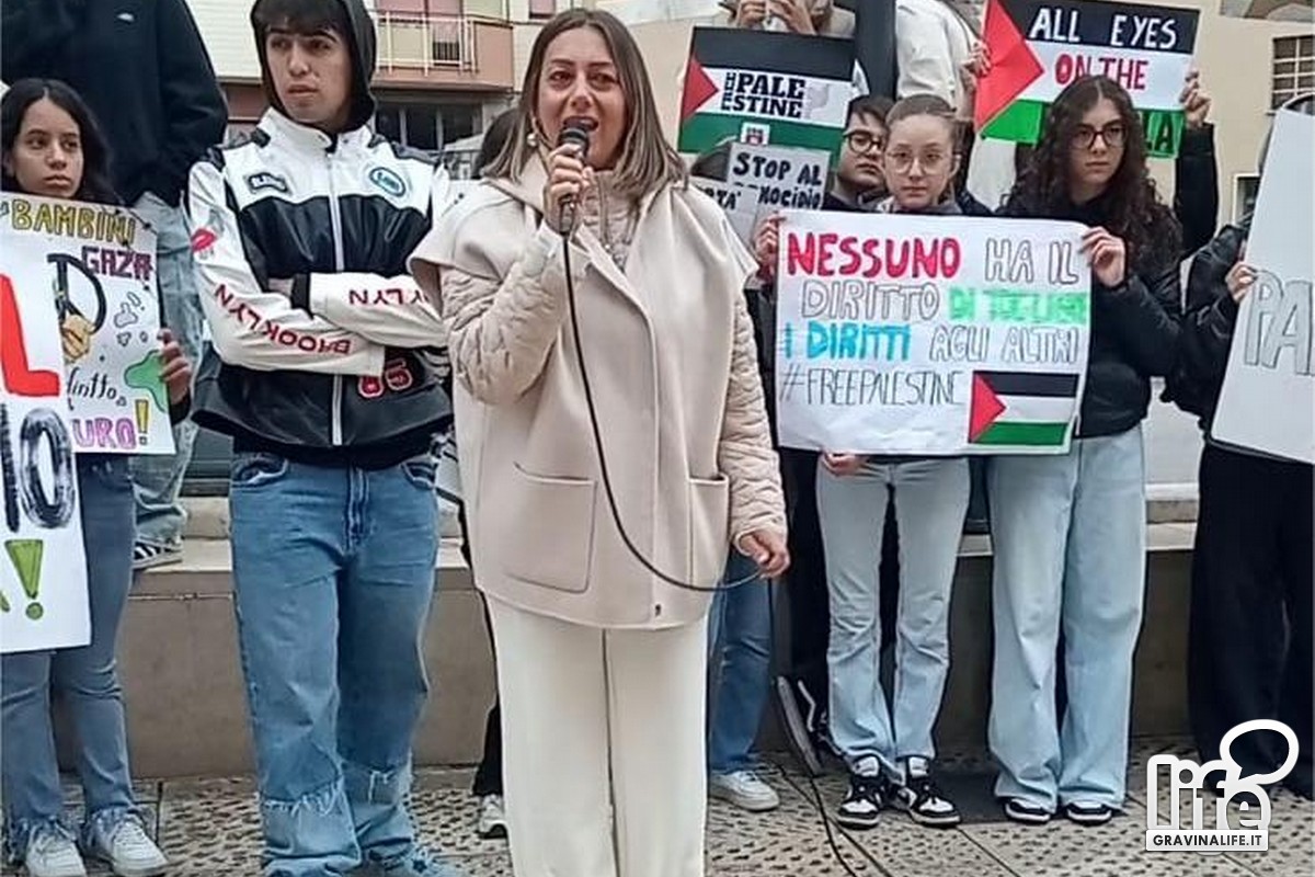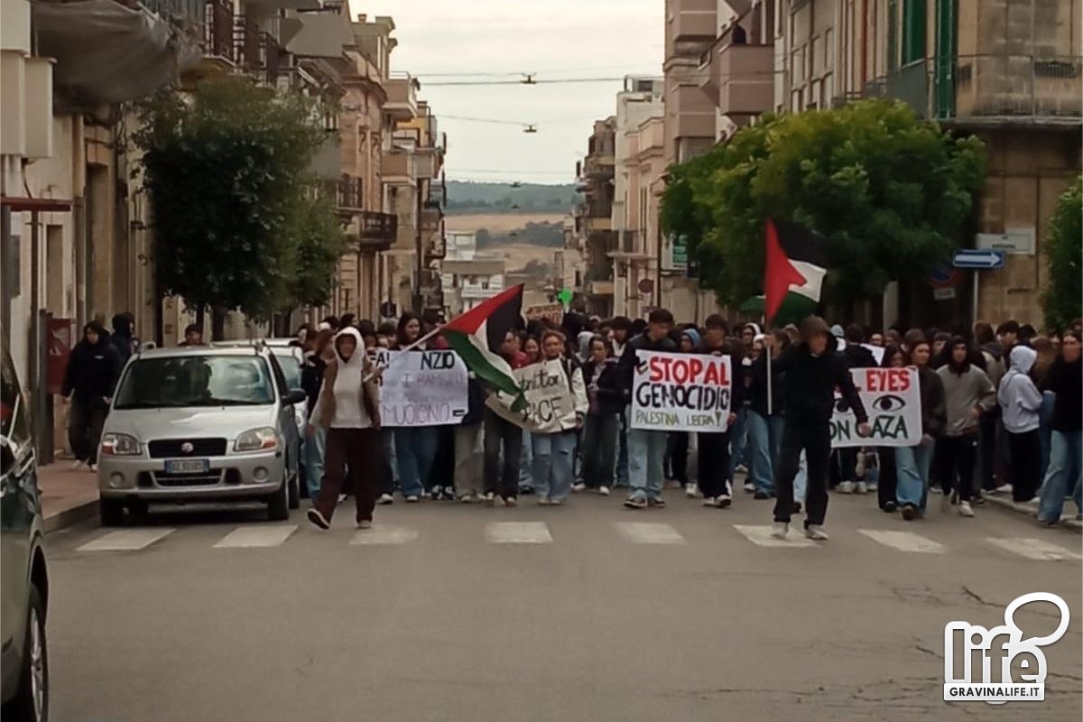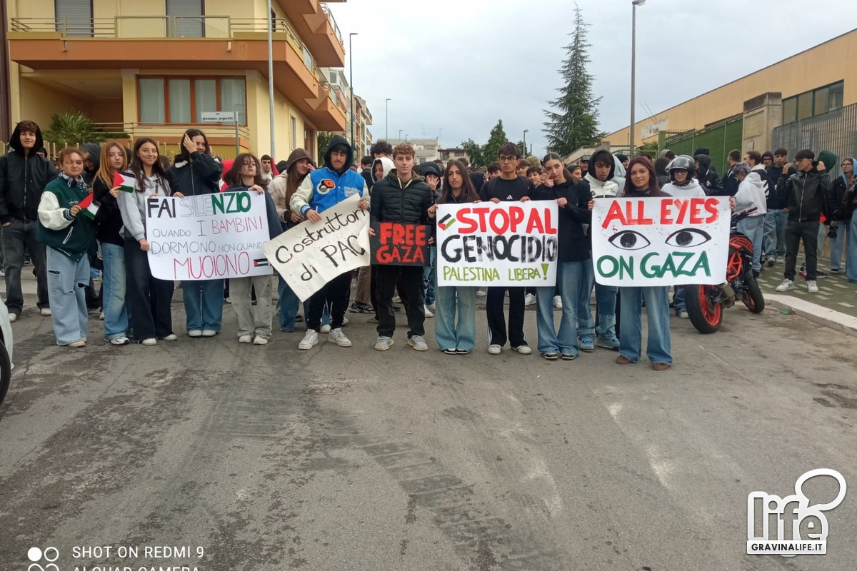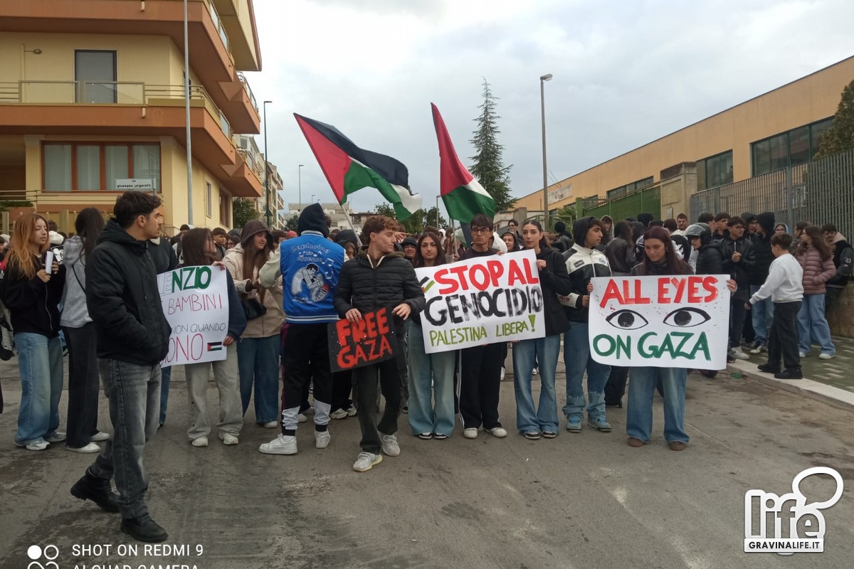 Al grido "Palestina libera" gli studenti del Liceo Statale "G. Tarantino" questa mattina hanno voluto testimoniare la propria vicinanza al popolo palestinese e la propria solidarietà alla Flotilla, la flotta di imbarcazioni diretta a Gaza per portare aiuti umanitari e fermata nelle acque internazionali dall'esercito israeliano.