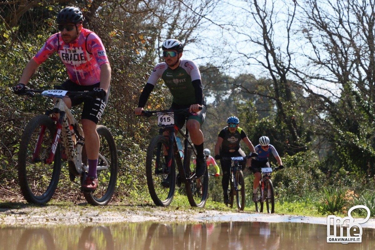 I NUMERI E I NOMI. Oltre al podio assoluto (Carenza–Notarpietro–Elia), i vincitori di categoria – secondo la classifica ufficiale – sono: EL Antonio Lavieri (A.S.D. Loco Bikers) 01:55:38; ELMT Antonio Carenza (Team Eracle A.S.D.) 01:44:54; M1 Valerio Callimo (A.S.D. Vultour Bike) 01:54:21; M2 Francesco Patruno (Team Eracle A.S.D.) 01:51:31; M3 Antonio Notarpietro (Team Eracle A.S.D.) 01:44:54; M4 Francesco Piscitelli (A.S.D. Team Oroverde Bitonto) 01:55:26; M5 Pasquale Semeraro (ASD New Cycling Team) 01:51:33; M6 Luigi Carrer (A.S.D. Fusion Bike) 01:51:20; M7 Domenico Del Vecchio (ASD Puglia Challenge) 02:11:10; M8 Leonardo Bellanova (ASD Team Bike Puglia) 02:35:41; M9 Giuseppe Lazzazzara (Gruppo Ciclistico Fausto Coppi ASD) 02:36:21; JMT Gabriele Di Palma (ASD Canusium Bike) 02:30:51.